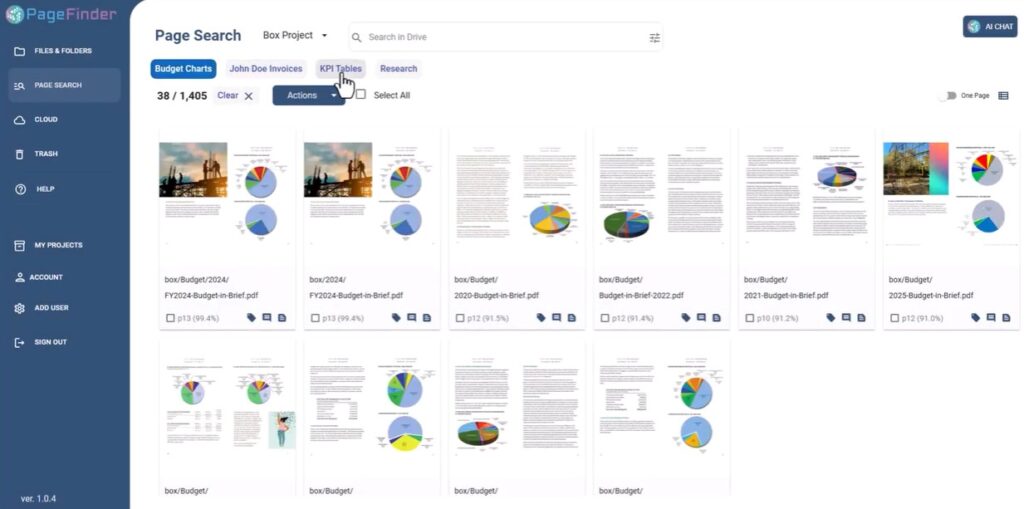 PageFinderのマルチモーダルAIと信頼性の高いデータを生成するRAGベースのAIチャットがあなたの情報を探します。画像を手がかりに検索し、更にAIチャットに質問し、対象を絞り込むなど、いろいろなアプローチで必要な情報を探せます。もう情報がどこにあるのかを気にする必要はありません。ファイルやデータの保管場所が分からなくても、PageFinderが検索結果やチャットの画面に元データのリンクを表示して教えてくれます。探す手間が大幅に減る、一緒に探してくれる、これがPageFinderの強みです。